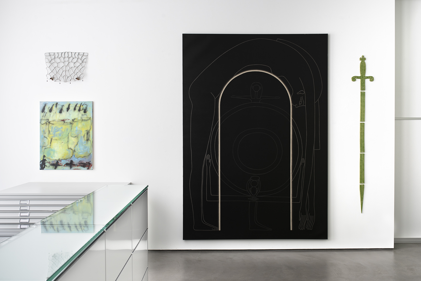 Mit ihrer Arbeit an den Schwarzen Göttinnen widmet sich Mields einem Motiv, das zugleich uralt und von radikaler Gegenwärtigkeit ist. In einer über mehrere Jahre hinweg geführten Recherche sammelte die Künstlerin Mythen und Überlieferungen weiblicher Gottheiten, die in Kulturen rund um den Globus dunkle, unheilvolle, aber auch schöpferische Charakteristika von Weiblichkeit verkörpern: von über 2000 Jahre alten, frühgeschichtlichen Überlieferungen in Keilschrift bis hin zur haitianischen Erzulie, einer Göttin des Voodoo, die sowohl Liebe als auch Zwietracht und Rache verkörpert und in der Haitianischen Revolution im 18. Jahrhundert gekämpft haben soll.